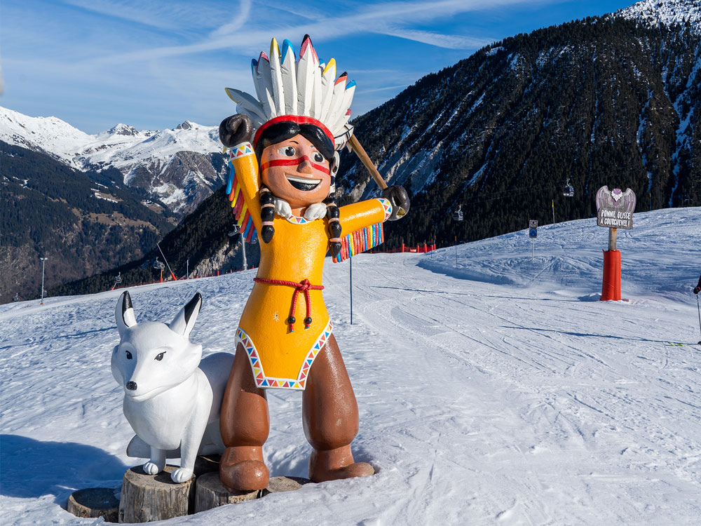 On the Indian piste and in the Courchevel Moriond sector, follow in the footsteps of Yepa, the young Indian girl! Enter the blue piste and discover the Sioux atmosphere: skiers will discover a veritable canyon, surrounded on either side by sumptuous fir trees. You're now on Yepa's land, and with her, get ready to rediscover the spirits of nature. All while having fun, of course!